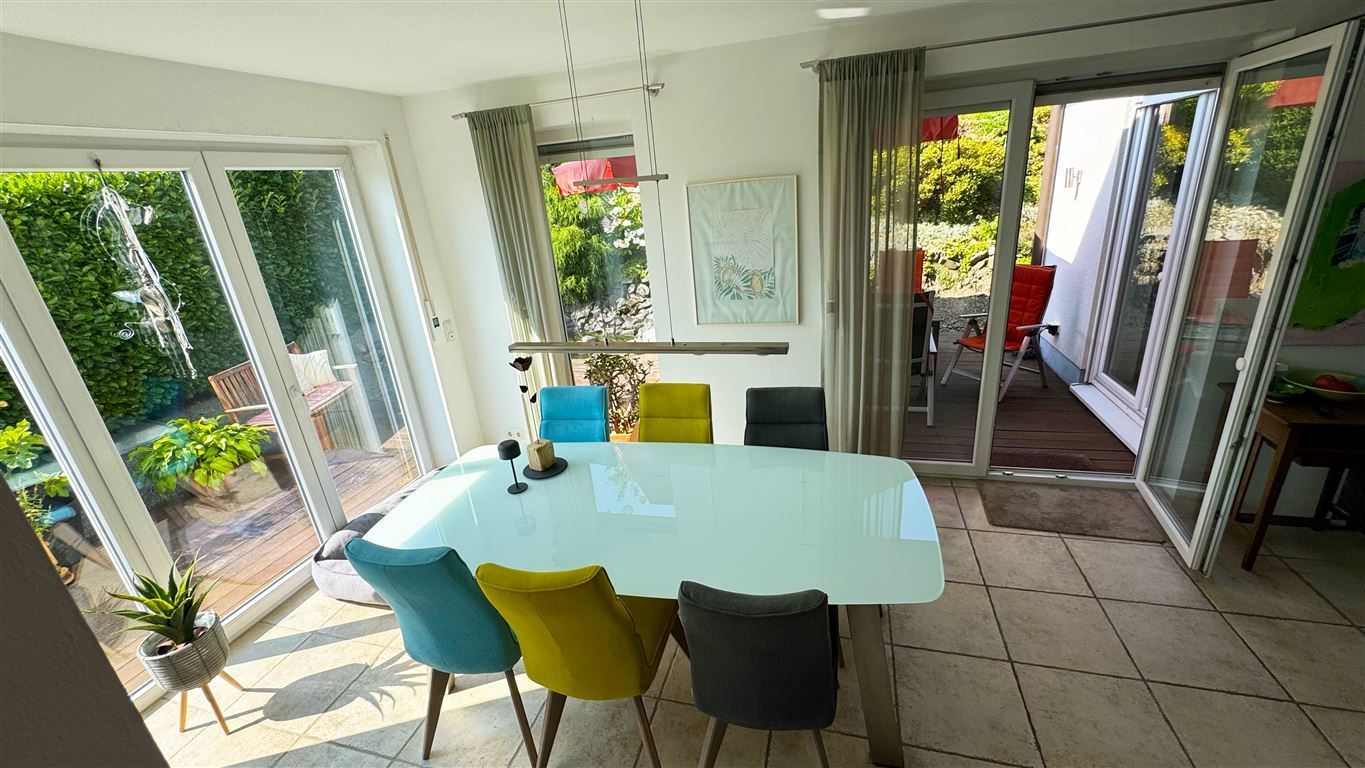 Auf den ersten Blick erkennt man schon die mediterane Gestaltung. Das komplette EG verfügt über einen einheitlichen, hellen Natursteinboden.