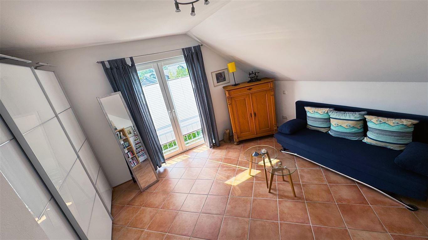 An optischen Highlights wurde nicht gespart. So haben Sie im hier als Kinderzimmer ausgewiesenen Raum z.B. die foliert verglaste Außenwand mit Blick in den Garten und einen begehbaren Kleiderschrank.