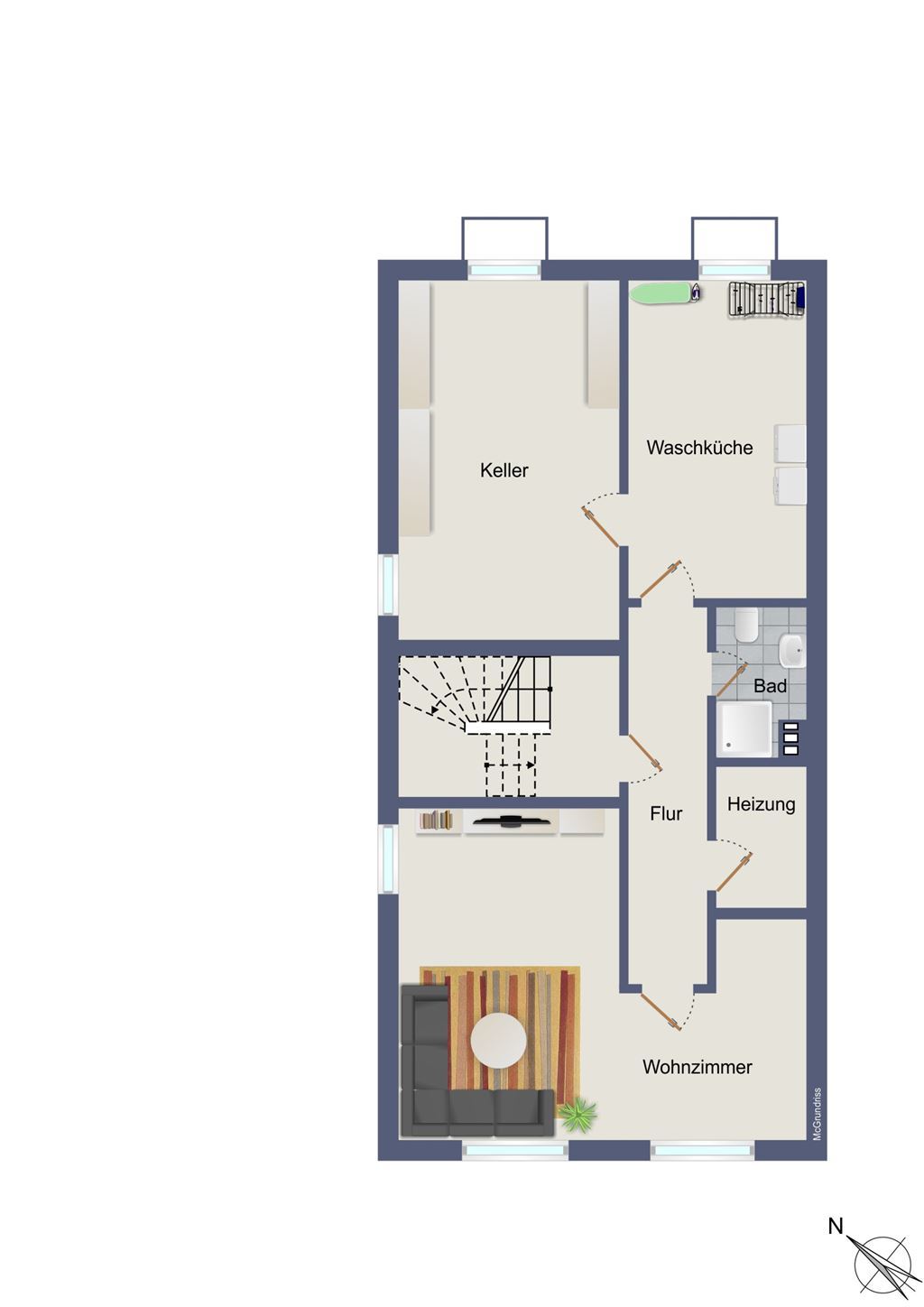 voll unterkellert, teilweise zur Nutzung als Büro, Fitness, Spielen ausgebaut